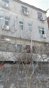 记者顺楼道往楼上走,发现整个楼道被熏得黢黑,三楼房间的门窗也是黢黑一片。郭泉水家就住在三楼中间的套间内。绕到楼后,可见有床单弃在地面的砖石之上。