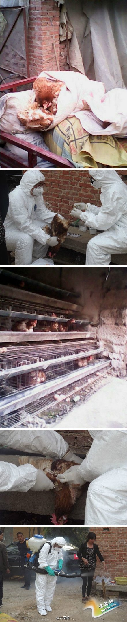 【河南汝州一养鸡场出现鸡集体死亡】4月15日上午,汝州市尚庄乡一养鸡场出现集体病死。养鸡场负责人称,他养鸡多年第一次遇到这种事,五天前养鸡场里两只鸡突发疾病,医治无效死亡,第二天鸡场出现了大量的病死,不到一周已病死700多只鸡,活着的有些也已经发病。当地动物疾控部门已介入。via大河网