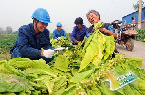 60個煙炕巡視完畢已是上午10點鐘,這時,來烤煙的煙農也陸續多了起來,看到農電工魏國強和袁淑濤,靳村的李大爺也主動上來打招呼。李大爺告訴筆者,他家的第一炕煙1600斤已經烘烤完畢,可以收入2萬元左右。李大爺的臉上還是留露出來一絲遺憾,由于今年天氣異常幹旱,煙葉種植也受到了很大影響,産量較去年減産50%以上,李大爺今年種了近50畝煙葉,大約能收入15、6萬,相比去年少收入10多萬元。李大爺説,能有這樣的收成還得好好感謝供電所,國強和淑濤來幫他把地澆了3遍,現在又主動幫忙烤煙,烤煙期間也沒有停過電……談起供電所的服務,李大爺更是讚不絕口。