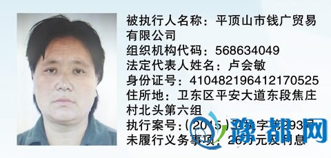 《平顶山市卫东区人民法院公布失信被执行人名单》由河南新闻网-豫都网提供,转载请注明出处:http://pds.yuduxx.com/weidong/510720.html,谢谢合作!