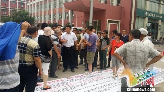 6月23日中午,记者刚刚赶到鹤壁市淇县电业局门口,只见几十名被骗群众把正准备外出的电业局长张爱国围住,要求局长给个说法。