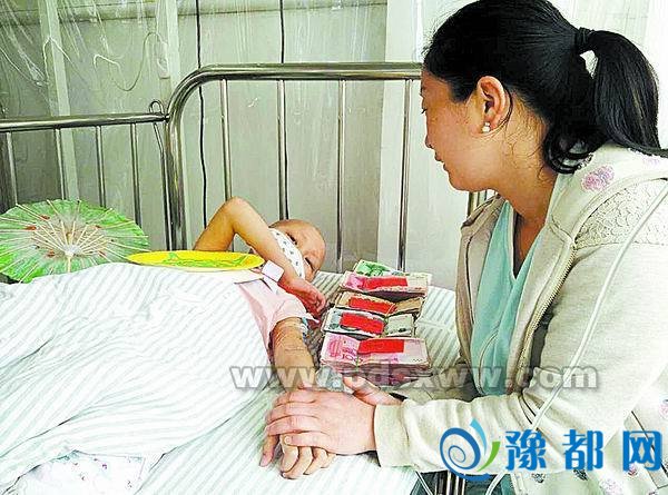 ????该园副园长李利红在芮梦涵的病床前告诉记者,该园从团市委得知,宝丰县肖旗乡韩店村7岁女童芮梦涵罹患白血病、家庭困难后,对芮梦涵家庭进行了走访,并于6月3日在全园发起“创意美工展暨慈善义卖活动”,通过义卖学生自己的绘画和手工作品,募集到4万余元;全体教职工和学生家长也踊跃捐款;在幼儿园的感召下,附近的平顶山碧桂园职工也捐款1380元,善款总计43382元。
