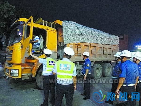 ????当晚9点20分左右,记者来到许南路我市与许昌市襄城县的交界路段,市交通运输执法局和襄城县交通运输执法局的数十名执法人员正在这里联合治超。尽管天气炎热,来往车辆又带起阵阵灰尘,但执法人员排查过往车辆一丝不苟,发现可疑车辆立刻拦下检查。