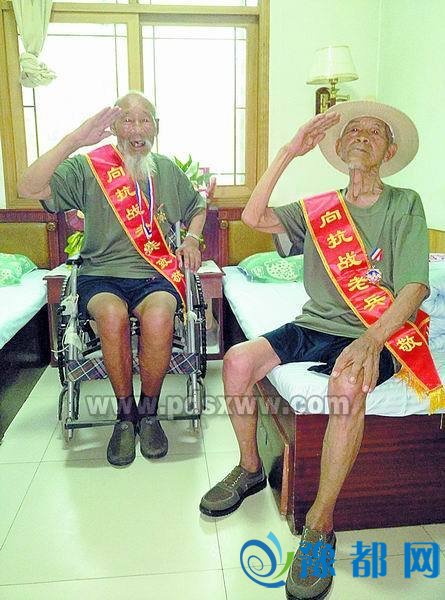 ????□记者 吕占伟 文/图????豫都网讯 7月23日上午,平顶山市夕阳红老年公寓内热闹非凡。在关爱抗战老兵平顶山群志愿者的帮助下,已经100岁高龄的驻马店籍抗战老兵孙永清和91岁高龄的宝丰籍抗战老兵李海水被接到公寓居住(上图)。