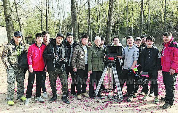 ??? 电影《棒槌萝卜狗》杀青后,导演李建军(中)与摄制组人员合影。平顶山新闻网记者 张鹏 摄